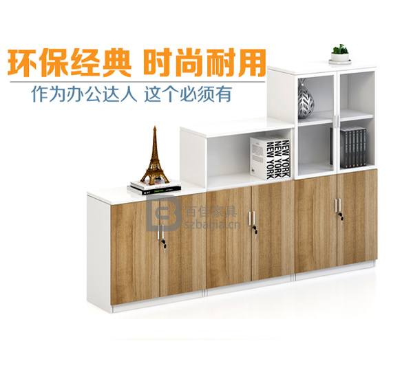 材质:1.采用E1级绿色环保三聚氢胺纸饰面,抗硬度性能好、具防刮、耐磨、防污、防损、防酸碱、耐火等特点;内部基材为E1级优质实木颗粒板,握钉力强、板材经防虫防腐处理、比重合理;甲醛含量≤1.5mg/L,物理、化学性能指标均达到国际相关标准。2.封边用材;采用PVC封边条,热熔胶封边,封边严密、平整,与整块板材严丝合缝,不脱胶、表面无胶渍。3.五金配件:采用优质五金配件,所有五金件作防锈、防腐处理,优质锁具,铰链为缓冲铰链。